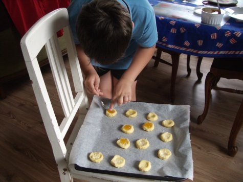 Kui mina olin parasjagu ametis kamaküpsiste valmistamisega, otsustas Sander, et tema tahaks mingeid teistsuguseid küpsiseid, otsis "Anna- Liisa kokaraamatust" retsepti ja meisterdaski valmis ühed maitsvad moosiküpsised.